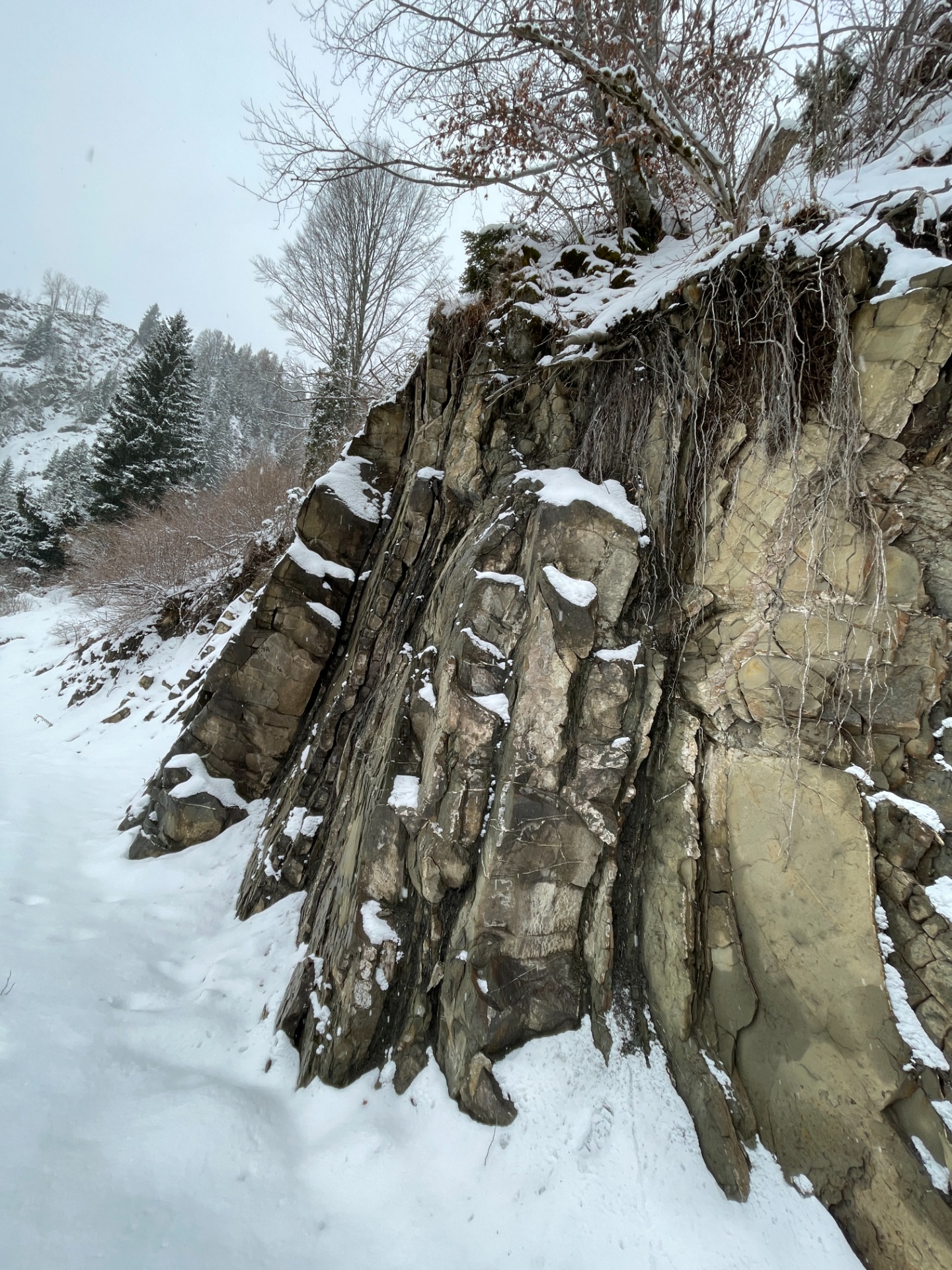 Cestou dolů jsem absolvovala úžasnou Kájovu geologickou přednášku o vyvření, vrásnění, odlamování... (už si zas nic nepamatuju). Geologům by prý srdce plesalo, tak jsem musela skálu vyfotit.